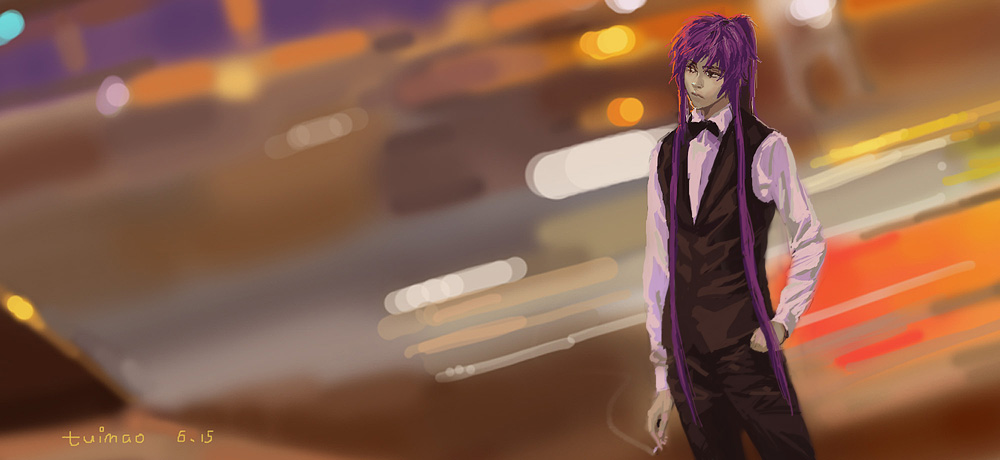参考D站Cos照片鼠绘来着,改了茄子的表情让他右盼一记,本来想望天的(又想画鼻孔么你!! 想练习颜色,不靠透明度不靠画笔属性自己去调色板找,好麻烦啊 其实今天超想回家继续画哥哥...昨天搞到2点还很兴奋不想睡(我的脑子已经被毁得差不多了吧)可是现在坐班了苦逼!!! 好闲呐,于是又涂了张Q——眼神死 |